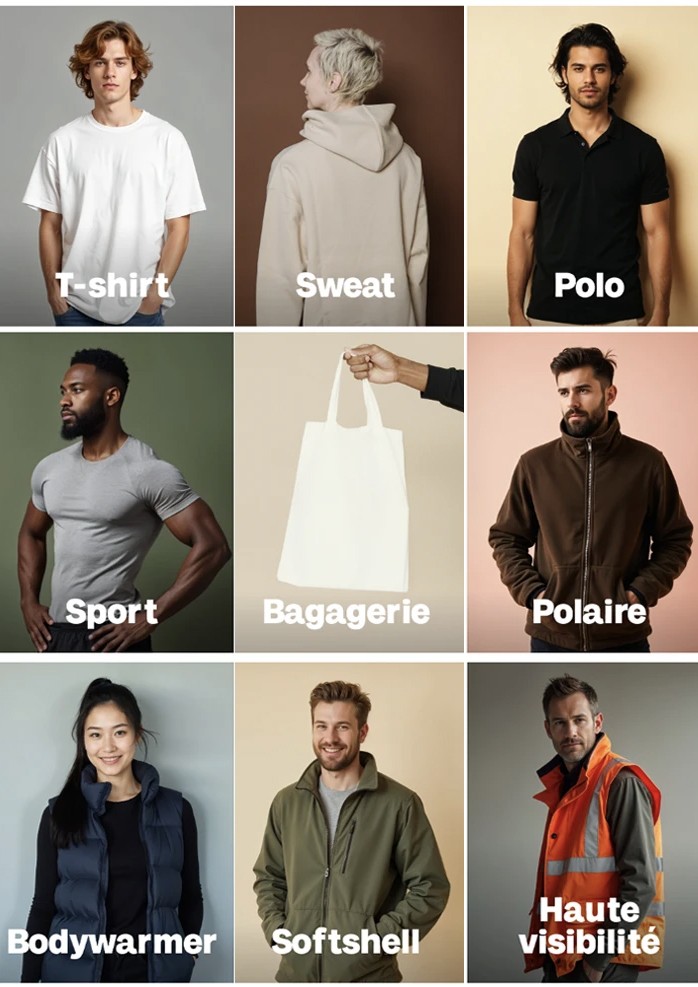Nous proposons un large choix de textiles : t-shirts, polos, sweats, vestes, tabliers, casquettes, vêtements techniques, et bien plus, adaptés aux besoins des entreprises, associations ou clubs sportifs.
